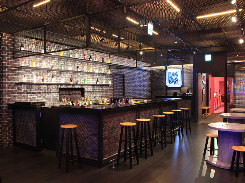 裝潢粗獷原始,整體色調以黑色及灰色為基底,搭配棕色調,充滿復古感。裸露的紅磚和水泥牆,展現工業風的粗獷氣息,彰顯酒吧的檔次,營造出放鬆而愜意的氛圍。